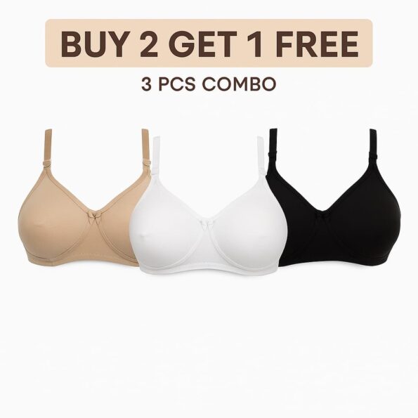 Upgrade your lingerie collection with this Buy 2 Get 1 Free Cotton T-Shirt Bra – the perfect blend of comfort, support, and style.