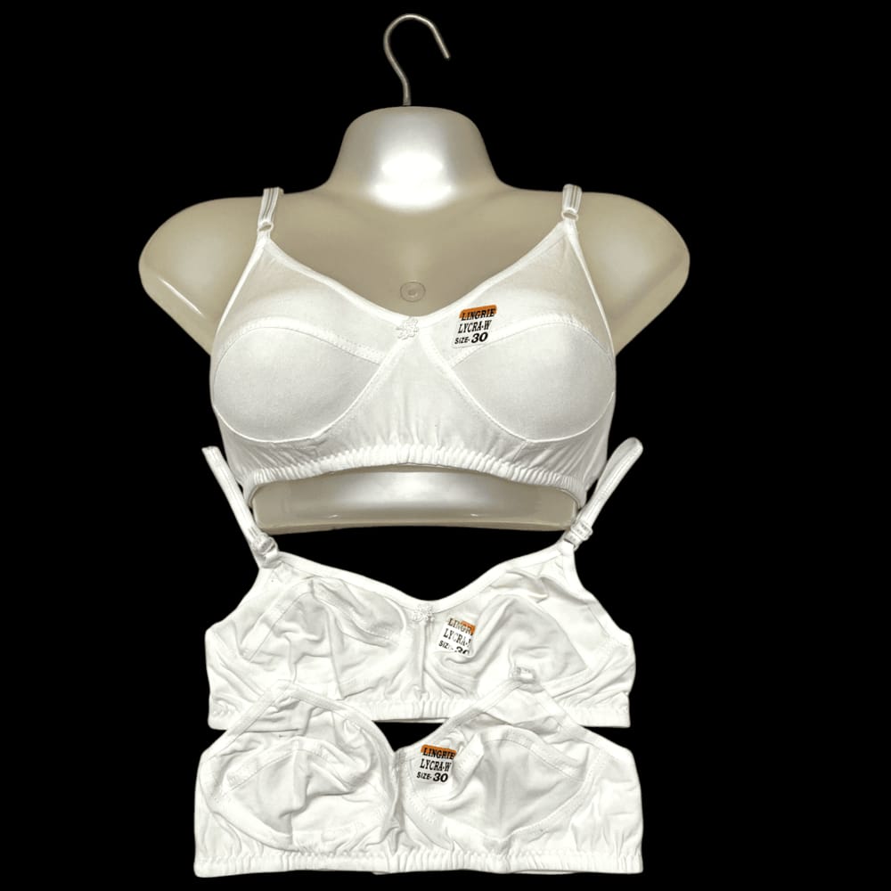 Lycra-W Women’s White Cotton Lingerie Bra – Pack of 2 (Size 30-40)