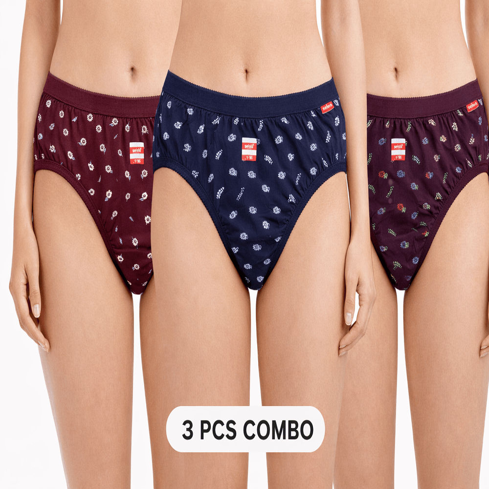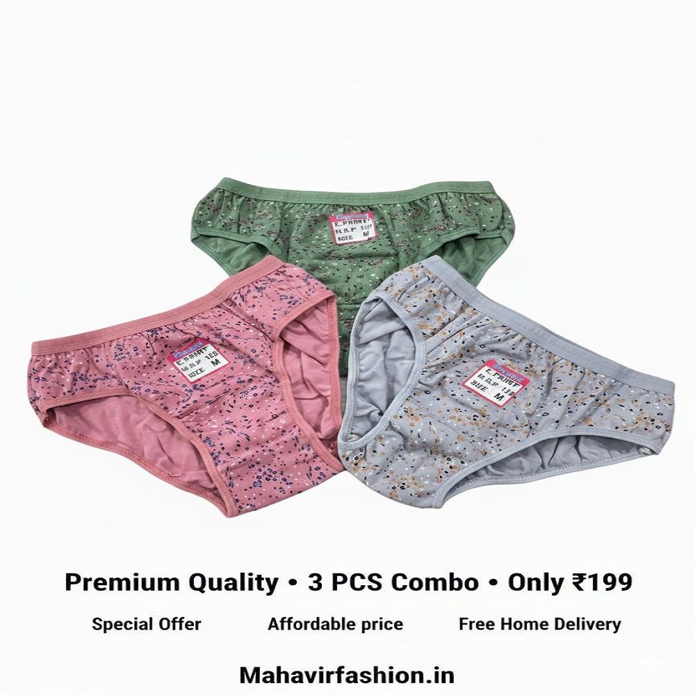 Experience all-day comfort with this 3-piece women’s panty combo featuring trendy star prints, breathable cotton fabric, and a flattering fit – perfect for daily wear.