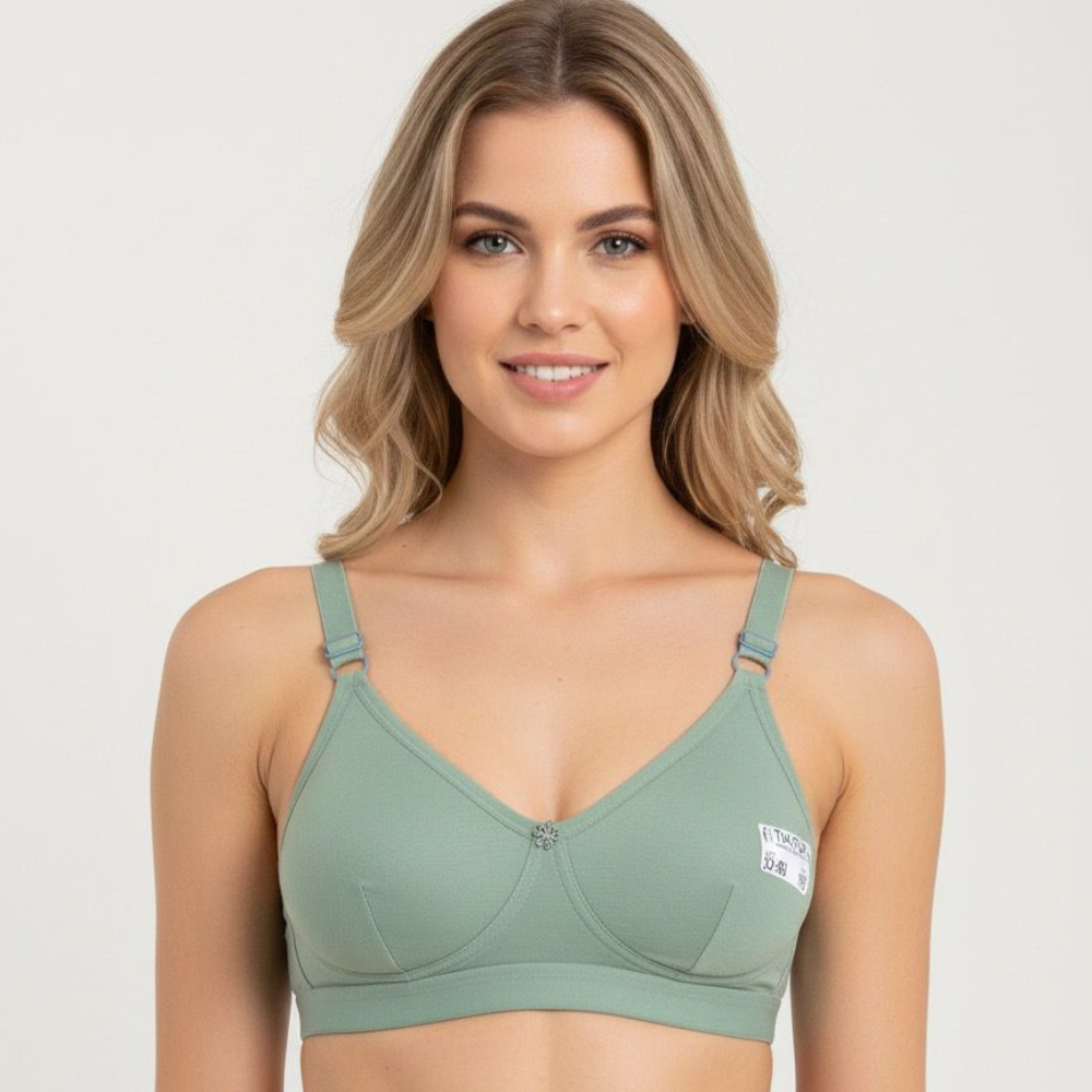 Experience everyday comfort with this women’s sage green non-padded bra, crafted for a smooth and natural silhouette. Made from soft, skin-friendly fabric, this bra offers gentle support without padding or underwire, making it ideal for long wear. The adjustable shoulder straps ensure a customized fit, while the wide underband provides added stability and comfort.